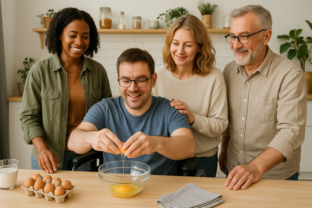 Participants engage in hands-on training in everyday tasks such as meal preparation, cleaning, laundry, budgeting, and hygiene routines. These activities are taught in a supportive, age-appropriate setting, allowing individuals to practice real-life skills in a way that matches their learning style and pace.